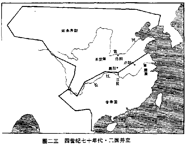 前燕帝国那时候的皇帝慕容昧,只有二十岁,国家大事由他母亲可足浑太后和宰相慕容评主持。晋军节节胜利,前燕不能抵挡,慕容评慌了手脚,打算放弃邺城(河北临漳),退回老巢龙城(辽宁朝阳)。慕容昧的叔父慕容垂亲王自告奋勇迎战,慕容评一面命慕容垂出兵,一面向前秦帝国求救,应许击败敌人之后,把虎牢关(河南荥阳西北)以西包括洛阳在内地区,割让酬谢。这时晋军已渡过黄河,挺进到邺城南九十公里的枋头(河南淇县东南淇门渡)。慕容垂奋勇抵抗,派出奇兵切断晋军漫长的粮道。现在轮到桓温慌了手脚,只好撤退,一直安全的退到襄邑(河南睢县),尾追在背后的前燕兵团合围,晋军大溃,死三万余人。接着前秦援军也到,晋军再度大溃,又死一万余人。 前燕帝国转危为安,可足浑太后和慕容评立刻作了两项自以为很明智的决定:第一、慕容垂已成为民族英雄,对皇帝的宝座——至少对宰相这个位置,是一个潜在威胁,决定把他铲除。慕容垂得到消息,深夜逃亡,投奔前秦帝国苻坚亲自到长安郊外迎接他,待作上宾。第二、当前秦帝国索取虎牢关以西土地时,慕容评口齿伶俐地回答说:“有国有家的人,守望相助,事属平常,没有人说过割地的话。”苻坚不甘心受愚弄,战争即行爆发。 前秦元帅王猛,前燕元帅慕容评,各统本国兵团,在潞川(山西潞城)决战。前燕兵团三十余万人,以鲜卑人为主,本是一支劲旅。可是慕容评却是天下最奇异的统帅,他对睫毛前的危机毫不在意,却在防区之内,派兵把守山隘河渡,向砍柴汲水和渡河来往的乡民,大收捐税。不久他就狠狠地发了大财,钱帛堆积如山。王猛听到后,忍不住失笑(任何人听了都会失笑,只有当事人觉得乘机改善一下生活,是一件严肃的事,没有什么可笑的)。决战布置妥当,七十年代第一年三七○年的冬天,前秦兵团发动总攻,前燕兵团在意料中的一溃而散。邺城接着陷落,慕容囗被俘。前燕帝国建立三十四年,匆匆而亡。 苻坚遂即转向西北前凉王国,六年后的三七六年,他派两位使节去姑臧(甘肃武威)作和平谈判。前凉最后一任国王张天锡,把两位使节绑到姑臧城外,乱箭射死,以表示他誓死抵抗侵略的决心。不过,凡是靠流别人的血以表示出来的东西——不管是决心或是忠贞,都不可靠。前秦兵团不久抵达,张天锡虽然誓死,却不愿真死,反而向前秦兵团投降。前凉王国建国五十七年,是短命王国中最长命的一国。 ——本世纪(四)七十年代,中国境内两国并立,前秦帝国在北,晋帝国在南,隔淮河对峙。 前秦帝国宰相王猛于三七五年逝世,这对苻坚的影响,犹如纪元前七世纪管仲逝世,对姜小白的影响一样。管仲临死时向姜小白所作的建议,姜小白大大的不以为然。王猛临死时向苻坚所作的建议,苻坚也大大的不以为然。王猛警告苻坚说:“国家的死敌不是晋帝国,而是杂处在国内的鲜卑人和羌人,他们的首领又都在政府中身居要职,有些更掌握兵权。我们最大的隐忧在此,必须早日纠正。”临终时再强调这个警告:“严防鲜卑,严防羌。”但苻坚是一个胸襟开阔,从不猜忌人的人。这种高贵的情操必然产生一种观念,认为只要诚心待人,对方一定诚心待我。所以他对那些投降或被俘的帝王将相,从不杀戮。甚至如鲜卑亲王慕容垂,羌部落酋长姚苌,反而引为知己,宠爱有加,授给他们高等官爵和很大权柄。苻坚的错误并不在此,而是在王猛逝世之后,他实施的一项重大的决策。即把祖居关中的氐民族,分批随同出镇的贵族,前往全国各地驻防。在氏人大量迁出之后,行坚却把前燕故地的鲜卑人,大量移入关中。前秦帝国是氐民族建立的,苻坚的意思可能是想使数量上居于劣势的氐民族控制全国每一个重要据点,作为一种安定力量。而把鲜卑人和羌人置于天子阙下,便于镇压同化。这构想是正确的,问题是,当中央政府力量强大时,控制据点即等于控制全面,但一旦中央政府力量瓦解,据点便等于虚设,只有被个别吞噬的命运。至于同化,那需要时间,至少五十年一百年,才能收到效果。
