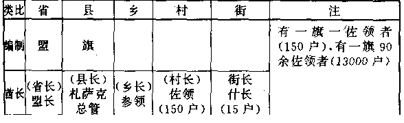 俄国人作威作福二十年,三藩战争结束,台湾也跟着收复。玄烨大帝对雅克萨城采取行动,一六八五年,中国边防军司令(都统)彭春,率大军包围雅克萨城,用一百五十门野战炮和四十门攻城炮,日夜轰击。四天后,守将图尔布青投降,中国允许他率领残余部队,向尼布楚撤退。——当俄国人再回到尼布楚时,中国没有再把他们驱逐,是一个大失策。等到俄军撤退后,中国纵火焚毁雅克萨城,也跟着撤退。 图尔布青在撤往尼布楚途中,遇见由尼布楚开向雅克萨的增援部队,携带着重武器,告诉他驻屯尼布楚的俄国大军随时可以接应。这使图尔布青懊悔不迭,他立刻同援军重返故地,于雅克萨城被中国焚毁后第十七日,再重筑新的雅克萨要塞。 中国接受这个挑战,明年(一六八六),宁古塔军区副司令(副都统)萨布素,再围雅克萨城。除用巨炮轰击外,并且使用从台湾调来参战的藤牌兵团攀城。图尔布青战死,守军只剩下一百余人,陷落就在旦夕。就在这时候,中国军队奉到停止攻击的命令。因为中俄两国外交人员正在北京接触,俄国要求先行停火,玄烨大帝允许。 一六八九年,中国代表团团长钦差大臣索额图,俄国全权公使陆军上将费要多罗,在尼布楚谈判,双方都戒备森严,双方的态度也都非常强硬,而中国代表更甚。索额图有两次在大怒下拍桌子而去,要下令担任警卫的边防军攻城,俄国代表终于采取妥协态度,遂签订下列的《尼布楚条约》: 一、外兴安岭之南属中国,之北属俄国。 二、额尔古纳河之东属中国,之西属俄国。 这是一个重要的条约,使中、俄得到和解,为中、俄两国带来一百七十年的和平,跟十一世纪中国与辽帝国澶州和解带来一百一十四年的和平同样重要。俄国对遥远的东方固然力不从心,而中国如果长期从事于东北荒凉寒冷地区的战争,也将精疲力尽。 中国习惯于把所有的外国都当作藩属,因为事实是这样。《尼布楚条约》是中国第一次以平等地位跟外国签订的条约,但获得的利益却十分巨大。当时中国的力量,事实上只能到黑龙江北岸,还伸展不到外兴安岭和鄂霍次克海。俄国向南侵略,是由冰雪荒原,进入流奶与蛮之地,永不会自动停止。而中国不然,汉人那时仍以辽东半岛为主要范围,有耕种不完的肥沃土壤,满洲人则争先恐后入关去当中国的主人,没有人傻到从流奶与蜜之地,投身到冰雪荒原。这可从对雅克萨城的处理上看得出来,中国人把它焚毁而退,俄国人却把它当作宝贝,建了又建。所以,《尼布楚条约》对俄国是一种阻堵,对中国是一种保卫。 蒙古只有一个,本没有内外。因为跟中国合并的时间有先后,遂被分割。先跟中国合并的南半部称内蒙古,后跟中国合并的北半部称外蒙古。 蒙古人于十四世纪被中国明政府逐出长城后,一直不停地内战。虽然达延汗于十六世纪一度予以统一,但他的后裔又分为四部,那就是:察哈尔部、鄂尔多斯部、土默特部、喀尔略部。不过这只是指达延汗的血亲后裔,另外还有两个相当大的部落,跟这四个部落同时并存的,一是住在东北北部嫩江流域的科尔沁部,一是住在东北西部西辽河流域的喀喇沁部。这六大部落中,喀尔喀部的人口最多,察哈尔部的力量最强。 本世纪(十七)初叶,察哈尔部的林丹汗,雄心勃勃地想效法他的祖先达延汗,创立蒙古再统一的伟大事业。一六一九年,他致函刚成立不久的后金汗国可汗努尔哈赤,信上开头就说:“统兵四十万蒙古国可汗,问候水畔三万人大金国可汗努尔哈赤。”努尔哈赤看了大感沮丧。但林丹汗的才干跟他的雄心不能配合,他对内完全采取高压政策,以致引起反感。二十年代时,嫩江流域的科尔沁部,首先脱离林丹汗的统治,于一六二四年跟后金汗国结盟。明年(一六二五)林丹汗向科尔沁部进攻,努尔哈赤亲自统率精兵赴救。林丹汗不敢作战,自行撤退。这一次虎头蛇尾的军事行动,促使科尔沁部感激后金汗国不止,作更彻底的归附。 三年后(一六二八),西辽河流域的喀喇沁部,不堪压迫,也叛高林丹汗,投降后金。四年后(一六三二),后金汗国第二任可汗皇太极,跟投降过去的蒙古部落,组织西征联军,对察哈尔部发动总攻,林丹汗大败,向西逃亡。土默特部和鄂尔多斯部,先后向后金投降。林丹汗逃到距青海湖尚有十天行程的大草原上病死,他的残部在青海一带仍支持三年。到一六三五年,终于也向后金屈服。 满洲人把上述的这些被征服的蒙古部落和土地——塞北全境,称为内蒙古。把漠北还没有合并的喀尔喀部称为外蒙古。后来满洲人入主中国,这种称谓和区分,一直保留下来。 清政府对蒙古人跟汉人不同,有下列的两大特点: 其一取消蒙古固有的部落制度,改为盟旗制度,限制迁移,以便予控制。盟旗的行政系统,如下表显示: