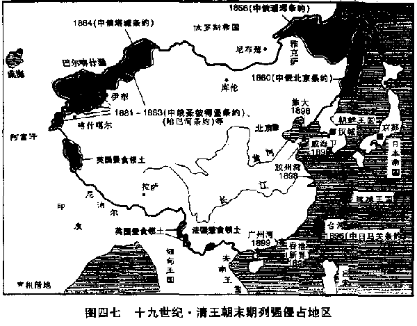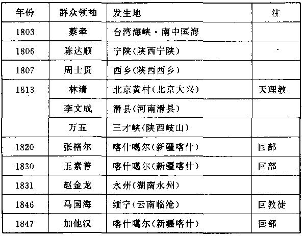 我们选择林清跟张格尔二人作代表,加以说明。 林清是天理教的领袖之一,天理教就是白莲教,当白莲教被迫不能露面时,林清就用天理教现身。这位冒险家有一个气魄恢宏的惊人计划,准备一举攻陷皇宫,占领北京。另一位领袖李文成,则在河南滑县发动群众暴动,组成武装部队北伐呼应。这个计划最大胆的一点是,它采取擒贼先擒王的手段,准备先活捉皇帝。 一八一三年,林清率领群众进攻皇宫,不幸失败。李文成在暴动前夕被人检举,地方政府用酷刑把他的双腿折断。他的部下仓促起事,但因北京方面失败的缘故,最后也告失败,滑县城内二万汉人居民,全数被清政府屠杀。 张格尔是上世纪(十八)回部(新疆天山南路)大和卓木布那敦的孙儿。清政府官员的贪污暴虐,在回部更甚,维吾尔人处境比内地的汉人更为绝望。他们大批向西逃亡,越过葱领(帕米尔高原),投奔同种同教,而又使用同一言语的浩罕王国(乌孜别克浩罕)。浩罕对他们的同胞所受的虐待,深为愤怒。 事变的触发人物是清政府派驻回部的行政长官(参赞大臣)斌静,这位满洲赃官把维吾尔人当作畜牲一样看待,一八○二年,张格尔在浩罕王国军事援助下,攻陷天山南路大多数城市,但他显然缺少担任这种伟大事业所必须具有的英雄才能,他还没有把满洲人的势力完全驱逐出境,就急忙于专心从事内政的改革,而清政府始终掌握着塔克拉玛干沙漠之北最大的据点阿克苏城。 张格尔政权只有八年寿命,八年后的一八二八年,清政府反攻,张格尔被他的部属出卖,呈献给清政府。当时皇帝旻宁(禺页琰的儿子)教人把张格尔送到北京,他要亲自询问他叛变的原因。高级官员们———一群贪污蠹虫,立即想到上世纪(十八)(禺页)琰亲自审判王三槐,被三槐提出“官逼民反”的往事,恐怕张格尔也在皇帝面前揭发他们种种的贪暴罪行,就用一种毒药灌到张格尔口中,使他的咽喉腐烂,不能言语。当他装在铁笼之中,经过三千公里的长途跋涉,被送到旻宁面前时,口吐着白沫,痛苦万分。旻宁问他的话,他无法作答。旻宁比他老爹还要低能,他根本无意、也无力弄清楚这场事变的真象,所以他并没有把张格尔放出铁笼,教他用笔写出来,也没有追究张格尔何以喑哑如此。张格尔跟王三槐一样,受到磔刑。 我们列表只到四十年代为止,并不是以后再没有民变,而是五十年代之后,民变更大更多,如太平天国、捻军、回教徒、阿古柏汗国,比起林清、张格尔,要升高百倍,我们将逐项叙述。 在中国民变沸腾声中,西洋(欧洲,以及后起之秀的美洲)各国悄悄的在这个大黑暗国家的门口出现,要求通商贸易。 回顾双方面的关系是不愉快的。 中国文明在大黑暗时代之前,远超过西洋。十三世纪马可波罗眼中,中国简直遍地黄金。可是十四世纪明政府采取愚民政策,大黑暗时代开始,对所有的外来文化深闭固拒,中国遂跟西洋隔绝,远落在西洋之后。 欧洲在十五世纪发生剧烈变化,西班牙发现新大陆,葡萄牙发现绕道非洲好望角到达印度的航线。各国商人和基督教传教士陆续向东方发展,葡萄牙商船队于十六世纪一五一七年,抵达广州。六十年后的一五八○年,意大利传教士利玛窦,抵达澳门,并于一五八三年,进入较为接近腹地的肇庆(广东肇庆)传教。 因为隔绝太久的缘故,中国人对外国,尤其是欧洲,可以说一无所知。当利玛窦于十六世纪最后一年(一五九九)到达北京,求见当时断头政治皇帝朱诩钧时,政府高级官员在记载典章制度的《会典》书籍上,查不出有意大利这个地方,就坚决否认世界上有意大利的存在,幸而《会典》上载有大西洋国,于是利玛窦只好承认他就是大西洋国的人民。 葡萄牙商船队在中国有很好的收获,初次到广州四十年后的十六世纪一五六三年,明政府把荒凉的小小澳门半岛,划给葡萄牙,作为西洋各国商人的居留地。但澳门太过于狭小了,显然无法成为商业中心,他们要求进入南中国第一大港兼第一大都市广州。清政府直到十七世纪收复台湾,不再受海上威胁之后,才于一六八五年,开放广州作为商埠。葡萄牙、英国、法国、荷兰、西班牙的商船队和商人,汹涌而至。不过这时候的中国已非马可波罗时代的中国,西洋也非马可波罗时代的西洋,东方和西方互不相识,互不了解,各怀着跟对方相异的观念和相异的价值标准。 对于西洋的通商贸易,中国所表现的是一种怜恤的态度。中国始终是一个农业社会,一切自给自足,基本上不需要外国的产品。尤其是一些邻国的文化程度相当落后,面积又小人口又少,中国不仅是万王之王的天朝上国,而且也是物产丰富的世界中心。所以中国没有西洋那种因小国林立而产生的狭隘的国家观念,更没有西洋那种因同样因素而产生的贸易观念。只有对藩属国和进贡国,中国必须负起宗主国的责任,才准许他们前来中国贸易。如果他们对中国有重大的冒犯或拒绝中国的要求,好像不肯交出中国的逃犯之类,中国即停止贸易,作为一种惩罚,这惩罚通常都会使对方屈服。 中国对西洋的白种人,有一种离奇的印象——犹如白种人对中国人有一种离奇的印象一样。虽然中国人也曾有一小部分见过欧洲人,并跟他们打过交道做过生意,但这少数人并下能改变大多数人的意见,上自皇帝和统治阶级士大夫,下到小巷子摆地摊的穷苦小民。他们都坚信西洋人是一个没有文化的野蛮民族,鼻子特别巨大,皮肤像死人一样的苍白,长着猫一样奇