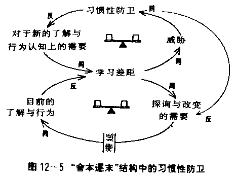 如阿吉瑞斯所说,习惯性防卫是对一项问题的反应;这里问题被定义为“已经知道的”和“需要知道的”两者之间的“学习差距”。弥补此项差距的“根本解”是探询,因为它能逐渐导致新理解与新行为,也就是学习。但是学习新事物对某些成员而言是一种威胁,因此个人与团体会对威胁作出防卫性的反应;这便导致“症状解”:用习惯性防卫来降低认知上的学习需求,以消除学习差距。 泰德和ATP其他管理者都被他们自己特有的习惯性防卫束缚住了。有几位管理者曾经表达他们对依赖少数几家大客户的担忧。当这项问题在会议上提出的时候,每个人都同意那是一项问题,但没有人对这项问题采取任何行动,因为每个人都太忙了。由于泰德对ATP产品有着无比的信心,所订定的成长目标又深具挑战性,使管理者产生了强大的业绩压力,他们积极扩大产能,这又产生不断接新订单的压力,而顾不得这些新订单从哪里来的。 总公司主管也被一个类似的束缚绑住了。总公司也关切ATP的客户群太过狭窄,有些总公司主管私下质疑泰德的计划并不能提升公司长远经营的能力。但是这些主管既不愿破坏公司向来尊重部门总经理经营权限的价值观,同时也不愿使泰德难堪,所以他们只作间接的批评或保持缄默。 泰德也曾对自己的方案感到犹疑不定。他以前不曾担任过事业部门总经理的高阶职务,很渴望这次能证明自己的才能。由于不愿让部属和上司们失望,所以他绝口不谈自己对设定积极成长目标的不安。 这些存在于ATP其它管理者、总公司与泰德心中的困扰与矛盾,被掩盖在习惯性防卫之下,因而从未获得化解。ATP的管理团体碍于泰德对于成长目标的热切,始终未采取应有的行动。总公司的管理者碍于公司的价值观,也始终未能对泰德提出应有的忠告。泰德则是虽需要帮助,但是又不想显得没有自信的样子。以该公司强调的互相支援、同志爱及一体的精神,这些困扰原本应该有许多处理的方式,但却受困于习惯性防卫这个组织中的隐形墙。说实话的恐惧 习惯性防卫愈是“有效”,背后的问题就愈不易彰显,问题也因此得不到有效的解决,这使得原本就发发可危的情况,更加恶化。这是因为他们并未运用学习来解决根本问题。在这个例子中,由于他们没有采取真正的对策——如何扩大客户群,问题因而更加恶化。就像所有舍本逐末的结构一般,团体愈是诉诸习惯性防卫,就变得愈加依赖它们。阿吉瑞斯指出,当习惯性防卫成功地消除了眼前的痛苦,它们也同时阻碍我们获悉怎样消除造成痛苦的根源。 阿吉瑞斯又说,习惯性防卫常被人刻意地隐藏起来。这是因为一般的舆论都赞成开放,而认为防卫是不好的,使大家不愿意承认自己有习惯性防卫的心态。如果泰德的总公司主管曾经说出自己心中的想法是为了避免引起冲突与尴尬,所以未曾当面指出泰德计划的缺失,他们必然已经避免了这个想法。同样的,如果泰德能说出:“我是在逃避使自己看起来软弱无能”,他的防卫策略将不会持续太久。但是没有人说出这些感觉,因为说出事实的恐惧使每个人一开始就采取习惯性防卫。 如何降低习惯性防卫? 用什么方法可以降低习惯性防卫呢?多数“舍本逐末”结构,杠杆点所在位置有两个可能的方向:一、削弱症状解,二、增强根本解。削弱症状解 削弱症状解的方法之一,是先行减低防卫反应对情绪上的威胁。譬如,如果泰德对于在总公司上级主管面前坦然承认他自己没有把握,或上级主管们对泰德坦然说出他们心中的疑问,这样在发生习惯性防卫的时候就处理它们,便可以削弱症状解。习惯性防卫只有在禁止讨论的环境中才会强而有力;或只有当团体假装自己没有习惯性防卫,像鸵鸟般对问题视而不见,才会受困于习惯性防卫,一旦开放讨论,它们就会“见光死”。 但是如何使问题变得可以被讨论,是一项巨大的挑战。尝试“治疗”别人的习惯性防卫,几乎一定会受到还击。例如,质问某个人为什么表现出防卫的行为;几乎毫无例外的,对方的第一个反应是抗议:“我?我并没有防卫的行为!”而向别人提出此问题者,似乎并不了解如此的问法反而只会加强对方习惯性的防卫。一个巴掌拍不响;如果我们认为别人有习惯性防卫心态在作怪,极可能我们是这个习惯性防卫互动结构的一部分。有技巧的管理者知道如何处理防卫、而不会导致更加防卫的情况。 他们的做法是自我揭露,并以询问的方式探究自己和别人防卫的原因。例如,他们可以这样说:“我觉得这个新提议不妥。你或许也有这种感觉,能否帮我看看这个不妥的感觉来自何处?”或“我所说的合理吗?我的沟通方式是否太过强硬或主观?但是我想听听你的观点,这样我们可以对状况有一个更加客观的看法。”这两段话都承认讲话的人感到不妥,而邀请别人一起探询原因。增强根本解 消除习惯性防卫所需的技巧,基本上与在“舍本逐末”结构中增强“根本解”的技巧是相同的,也就是反思与相互探询的技巧。以探询的方式讨论问题的原因时,个人应毫不隐藏地摊出自己的假设和背后的推理过程,并鼓励别人也如此做。如此一来,习惯性防卫便无从发生作用。 虽然习惯性防卫对团体特别有害,然而,如果真正有学习的决心,团体正是转化个人习惯性防卫的最佳场所。所需要的,正是前面再三提出的,是一个我们真正想要的愿景,其中包括企业的绩效、希望
