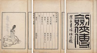 ,所以又有称《剑侠传》。但大约《卅三剑客图》只是画像集,有图而无原文,《剑侠传》则是王世贞辑录任渭长插图的小说——从右图可看出《剑侠传》的目录第一为“老人化猿”而不是“赵处女”。