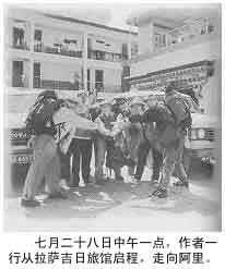 ![]() 阿里像闪烁在天空中的星座 阿里,那片被称为世界屋脊的屋脊,海拔最低也达到四千五百米的半荒漠的高原,是一片至今仍然神秘莫测的土地,它就像一颗悬挂在天空里的遥远的星座,闪着迷幻而又神奇的光芒,令人怦然心动。 拉萨人却并非如我们一样有着如此之多的激情,他们视阿里为畏途。我们租车时就遇到了困难。 在拉萨,丰田越野车跑一趟阿里,开价到了两万。找卡车,当你说明是去阿里,司机们都懒得跟你谈,大摇其头,口里连连说:“不去!不去!” 我们要租两部车,一部小车坐人,一部卡车装物。两部车同行,是一种安全措施,因为去阿里根本就无路可走,汽车不但要自己开路,还要像船一样过河。车陷入河床之中是家常便饭。有两台车,遇到什么意外,另一部车还可以用,或者拖车,或者去找援助,不致于困在大草原上受到寒冷、饥饿和狼群的威胁,这常常是要付出生命代价的。 ![]() 我们在拉萨街头跑了两天,连一部卡车也没有租到。最后,通过朋友找到了区政府车队,租了两部丰田越野车。司机索多和扎西部是藏族司机,他们多次去阿里,在藏北无人区与考察队最氏时呆过三十月,过惯了与野人无异的生活。他们开出的价钱是每公里三块五角钱,停车一天收费三百元。我们无话可说。 接下来,大家忙着准备上路的东西。张宇事先从广州空运来了大批物资,有银鱼、午餐肉、粟米羹等罐头,有苏打饼、薯片,压缩饼干,麦片、腊肉、腊肠等副食品。连口香糖、咖啡、朱占力都捎带上了。除了吃的,空运的还有两个进口帐篷,一个睡袋。我们在拉萨又买了五床军用棉被,两口高压锅、几十斤大米、两箱水果和一袋蔬菜,如同搬动一个家,样样俱全。 这些物资把两台丰田车的“货仓”塞得满满的。司机又塞进一个大汽油桶和一个羊毛睡袋,关门时,还得两个人一起使劲才有时扣死。 去阿里的队伍在拉萨又重新调整了一次。田斌、周小兵两位女士是相约从广州乘飞机赶来的,路上她们遇到三个男子汉,凑巧的是,这三个人也专为阿里而来,是田、周的校友。他们的名字是岑伸、冯远、冯嘉祥。张宇却因故退出,那天下午,我们组成厂一个六人行动小组,大家互报姓名,像老友重逢似的兴高采烈。大家清楚,从这一刻开始,我们就是一个生死与共的集体了。 ![]() 岑伸、冯远、冯嘉祥为表示自己去阿里的决心,个个剃了光头,以绝回头的念头,没想到,沿途无处可以洗澡,光头倒大大方便了他们,这也算作一个意外收获吧。 为便于称呼,冯远、冯嘉祥、岑伸按年龄大小,分别被授予了光头A、光头B和光头C的称号,简称为光A、光B和光C。 六人都是摄影发烧友,长枪短炮扛来了不少,光A还带了微型录像机。 出发前的一天,我们去拜访了拉萨的一位活佛,又聚在一起举杯互祝平安。 七月二十八日,高原阳光浮动在拉萨城的街头,我们在这饱和的灿烂光芒里,走出了这座历史悠久、有着过于沉重宗教色彩的日光城,走向了遥远的阿里。 雅鲁藏布江两岸,高山陡峭,耸入云天。山体裸露着砂石和石头,笼着薄雾似的若有若无的绿色,那是稀疏的草宣布夏季对于荒山的一次小小占领。 这些山体十分松散,从格尔木进入拉萨时,我已领教过它的滑坡和泥石流的淫威。 那一天,我们在当雄吃过晚饭,汽车刚刚启动,东边的天空积聚起了黑压压的云层,闪电把才暗下来的大草原照得一片通明。不一会,滂沱大雨像千人大合唱,把四面雨声汇成起伏的波浪,陷我们于楚歌声中。 ![]() 青藏公路是柏油路,一般下点雨问题不大,出乎人们意料的是,今年雨水是几十年不遇的。沿路的桥梁、涵洞几乎都被冲毁,汽车老远就要下公路,从一条条河,沟中趟过去。平日不到三十小时的路程,我们从二十三日下午一点出发,日夜兼程,直到二十五日上午十点半才抵达拉萨。 ![]() 这天晚上的大雨,从当雄到拉萨,沿途的大小河流和沟渠都水势猛涨,老远就听到它们哗哗的巨响。车一头扎进河里,一米多高的轮子被水淹得不露一点胶胎,车像船一样渡河而过。在离拉萨大约六十公里的地方,泥石流冲到了路面。这时已是半夜十二点了。 ![]() 司机叫醒大家下来搬石头。高原反应加睡意膝陇,走在夜空下的路面,我像腾云驾雾,迈起了太空步,把一块又一块混着泥浆的石头搬走,我得使出比平常要大得多的力气才能搬动它们。 雨已经早停了,那发出巨大响声,有如闷雷滚过夜空的声音,是路下面的拉萨河发出的,那里漆黑一团,只闻狂怒的波涛拍扫、挤压和升腾后又塌落的声音。它是那样巨大和磅礴,像一头发疯的野兽欲撕裂这条山谷,摧毁这插入江心的峭壁。 ![]() 平生第一次见这么可怕的水流,真害怕整个路基垮下。 汽车冲过泥石流路段,才走了一会,车灯又照着了一股浑浊的水流,它腾空而起,如蛟龙飞越,司机都是青藏线玩命出身的,一踩油门,卧铺客车猛地冲了过去,那水柱击打在车身上,发出沉闷的响声。 又走了不到一百米,大面积的泥石流再次截住我们。其中一块有半个房屋大的巨石横卧在路中,我们几十个人下车一齐动手,铁棍都撬弯了,它纹丝不动。 往前探路,全是泥和石,石头定在路面,泥水还在哗哗流着,不断有小石头冲积在路上。大家一身泥浆,站在黑暗里,听四面水声撼动山岳,一脸无奈。 汽车停在这里过夜,一旦新的泥石流冲下来,后果不堪设想。我一人摸黑沿松散的石头坡爬上山去,爬不多远发现一条横贯于山腰的沟,沟里没有水,估计发