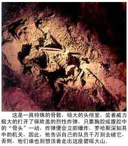 ![]() 这是一具特殊的骷髅,硕大的头颅里,装着威力极大的打开了保险盖 的烈性炸弹,只要胸腔或腹腔中的“骨头”一动,炸弹便会立即爆炸。罗 哈斯深知其中的机关,因此,他告诉自己的队员千万别去碰它,否则,他 们谁也别想活着走出这座碧瑶大山。 罗哈斯说许多人,包括总统的母亲何塞法,都出价要买这樽佛像。当他拒绝出让时,10名士兵在一天半夜之点出现在他在碧瑶的家中,他们带着枪和——张由何塞法的大伯于皮奥·马科斯法官签署的搜查令,这些人是国家调查局和保安部队罪行调查局的特务,他们把佛像装上卡车运走了,还装走了罗哈斯发掘出的其他珠宝,以及18根每根为1×2×3英寸的金条。罗哈斯根本没料到会遭到抢劫。带领这批人前来搜查的是总统的妹夫马塞利诺·巴尔巴,他是马科斯最小的妹妹福图娜“小”马科斯的丈夫。 时间是1970年,菲律宾探险家协会主席罗赫利奥·罗哈斯开始寻找山下奉文藏金。有关罗哈斯的资料并不多见,我们只知道他是一个锁匠和业余探宝员。开始寻找下山奉文藏金的时候,罗哈斯已经50余岁了。他是一个做事精益求精的人,性格较为温和,不大喜欢冒险(命运却让他作了菲律宾探险家协会的主席)。可是,当他拿到了一张日本人的藏宝图之后,他再也抑制不住探险的念头了,他决心按照图纸上标出的地点,把那里的宝物挖出来:罗哈斯并非一个贪财的人,从很大程度上说,他之所以想去冒一冒险,主要是想体现一下他作为业余探宝员的价值,体现一下他作为菲律宾探险家协会主席的能力。 罗哈斯的这张图纸是从哪里来的呢?这话需得从他父亲说起。 罗哈斯的父亲在二战时期是一个商人,专做紧缺物资的生意,比如说,当大米奇缺的时候,他便大量出售大米,当淡水奇缺的时候,他便销售淡水,最为奇怪的是,当军火缺乏的时候,他竟也能销售军火。他是当时菲律宾最有实力的商人之一。这样一来,就不能不引起儿玉誉士夫的注意,儿玉誉土夫要拉拢他活动范围内各个国家的这类人物,就像他在中国拉拢杜月笙和顾氏兄弟一样,他在菲律宾的一个重要目标就是罗哈斯的父亲。谁知罗哈斯的父亲是一一个民族主义者,民族主义思想在他的头脑中根深蒂固,他不愿意与儿玉誉士夫合作。他所出售的军火,也大都是卖给美国人或者菲律宾游击队,基本上不卖给日本人。岩渊和山下奉文都曾找他买过军火,且出的价钱,比美国人的价钱高出一倍多,可是,他坚决不动心。但是,这并不是说他就从来也不跟山下奉文和儿玉誉士夫等人合作,只不过,他们合作的项目,大多是一些生活用品。为了跟这个顽固而又具有广泛号召力的菲律宾人搞好关系,儿玉誉士夫和山下奉文都曾将其待为责宾。不过,他的结局则是被日本人暗杀于二战结束之前。 我们有理由相信,罗哈斯的那张藏宝图,便是他父亲当年从日本人那里弄来的。他父亲得到这张藏宝图的手段,很大可能是利用他进入儿玉誉士大或者山下奉文办公室的时候,顺手牵羊;另一种可能性则是日本人为了拉拢他而特意“送”给他的,但是,这不代表一种普遍的观点。 罗哈斯的父亲肯定没有在死前把这张藏宝图交给儿子,许多资料证明,罗哈斯是在60年代晚期才相信有山下奉文藏金的,很有可能是在那时候他才从父亲的遗物中发现了这张藏宝图。不管怎么说,罗哈斯有了一张日本人的藏宝图,随后,他就开始了小心翼翼的挖掘。在事情成功之前,他不想张扬,他是一个单干分子。 据罗哈斯说,藏宝图上标出的是碧瑶附近本格特矿坑中的一个埋藏点。从3月份开始,罗哈斯便不断地深入到碧瑶山中,包里挎着一个老式探测器,有计划地进行着精确的测量。为此,他花了几个月的时间,但他终于找到了,一旦把地点确定下来后,他知道单靠自己一个人的力量是不行的,于是他招募了10多个人。但正是他的这一招募行动,使他被马科斯手下的人盯上了梢。 罗哈斯的人挖了7个月之久,终于见出成效。 他们进入了一个到处散落着人骨的山洞。 由于有了图纸的指引,加上罗哈斯小心谨慎的性格,他们一路上避开骷髅阵设置的各种机关,没有遇到什么危险。 但是,当他们就要接近宝物的时候,却遇到了一具特殊的骷髅。这具骷髅没有腿,腹腔里奇怪地伸出一根螺旋形的柱子,胸腔部分呈“V”字形的两根有低浅凹槽的骨头,直通两肩的锁骨,头颅奇大。罗哈斯敏锐地发现这具骷髅的结构有别于普通的人骨,当年那些日本人肯定在上面作过特殊的加工。于是,他让手下人不忙着去动他。自己则站在一米开外,用他的探测器小心翼翼地进行试探。如果探测到的是人骨,探测器会发出“嘟嘟嘟”的叫声,可是,当他把探测器的尖嘴放在腹腔部位那很螺旋形的柱子上时,什么动静也没有。罗哈斯确信这不是人骨,有些紧张,对手下说:你们谁也不要去动这具特殊的骷髅,否则,谁也别想活着走出这座碧瑶大山!他虽然是因为紧张才说出这样的话,但并没有夸张。这的确是一具假骷髅!全身都由不易腐烂的物质组成,硕大的头颅里,装着威力极大的打开了保险盖的烈性炸弹,只要胸腔或腹腔的“骨头”一动,炸弹立即引爆。 这具假骷髅纵向躺在路中,把路面拦腰阻断,要想得到宝物,必须通过这道障碍。但是,它4米多长的躯体,使在场的人没一个敢跨越过去。罗哈斯认真地观察着洞子,想了许久,终于想出了一个办法。 他让人去洞外砍来十来根长长的木棒,扎了一个架子,架